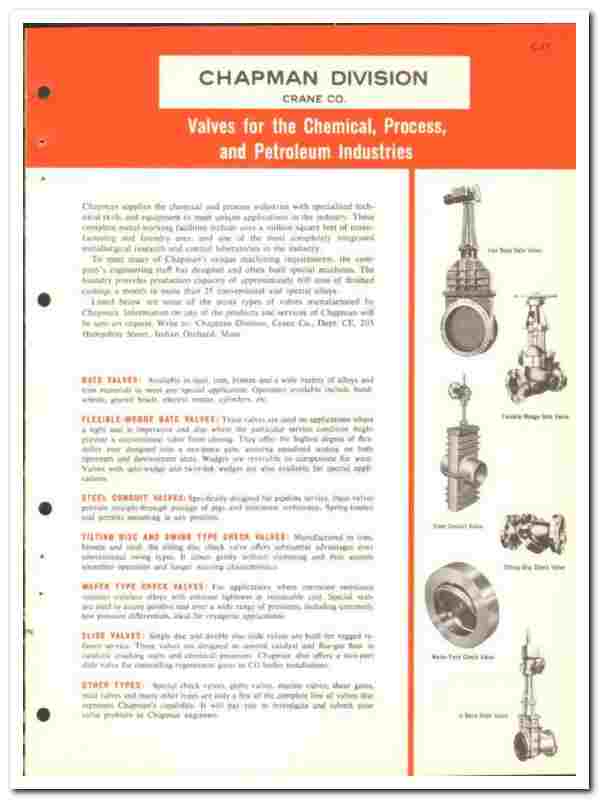 - Chapmen Division: Valves for the Chemical, Process and Petroleum Industries.