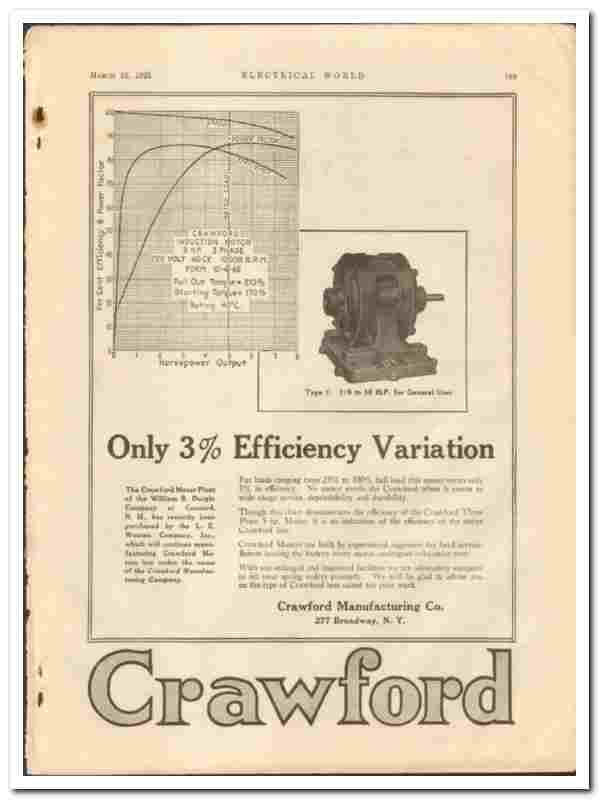 Crawford Mfg Company 1921 vintage electrical ad motor efficiency