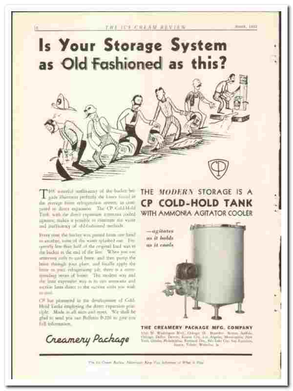 Manufacturers of the CP Cold-Hold Tank with Ammonia Agitator Cooler. 'Is Your Storage System as Old Fashioned'.