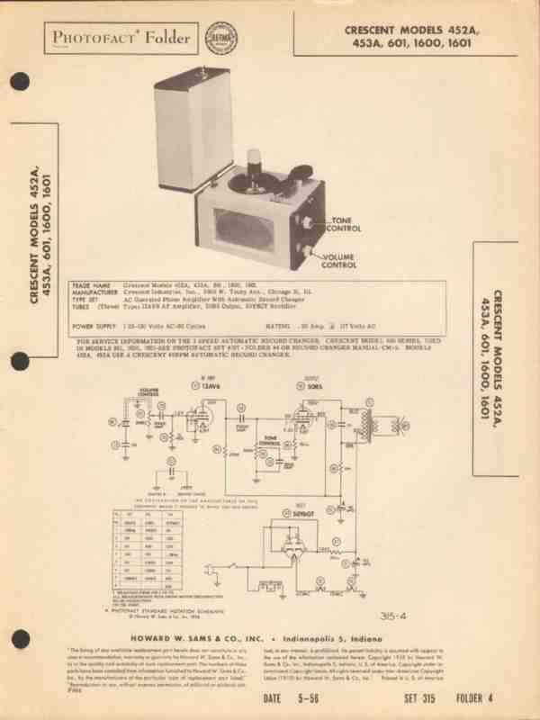 crescent model 45xa 601 160x record player phono sams photofact manual