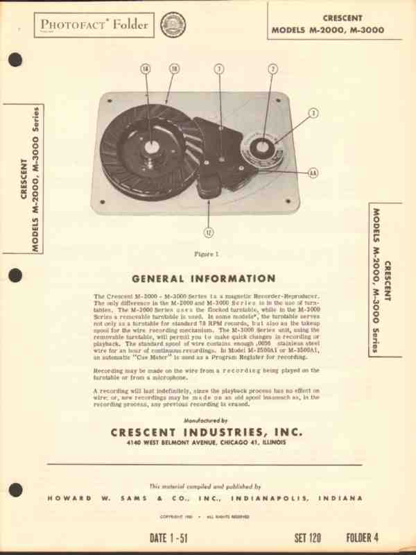 crescent model m-2000 m-3000 wire recorder phono sams photofact manual