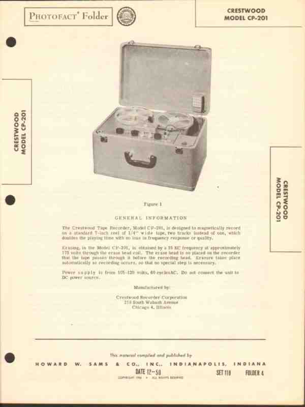 crestwood model cp-201 magnetic tape recorder sams photofact manual