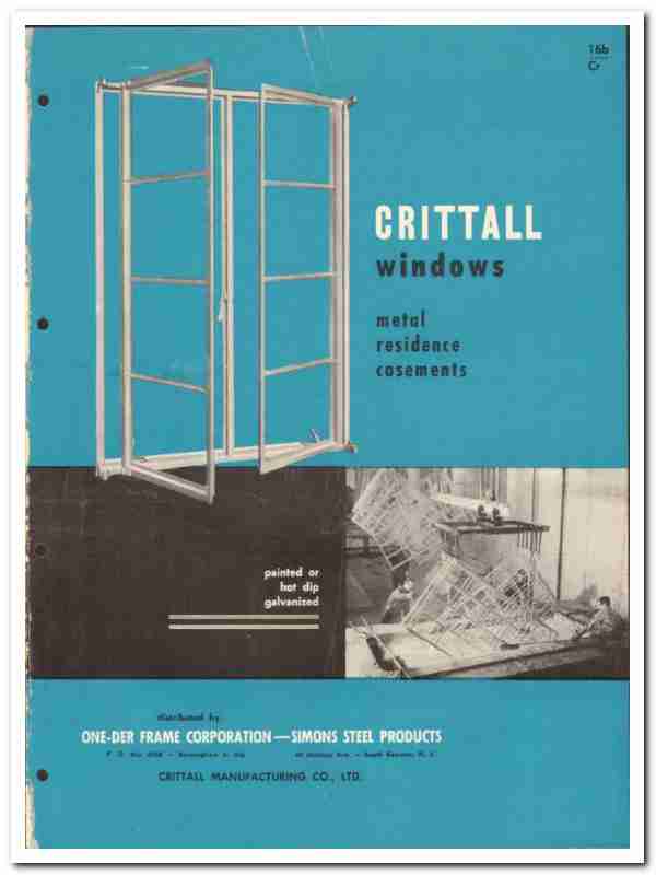 Original windows trade vintage catalog for CRITTALL MANUFACTURING COMPANY, LTD. Main office and plant was located in Braintree, England. Distributed in the USA by One-Der Frame Corp, of Birmingham, AL, and by Simons Steel Products, located at 60 Jacobus Avenue, South Kearney, NJ.