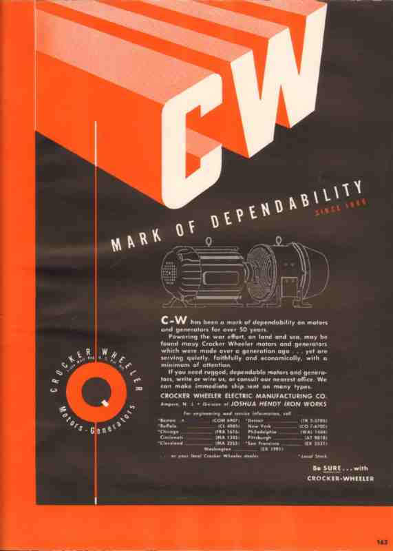 Crocker-Wheeler Electric Mfg Company 1943 vintage ad motors generators