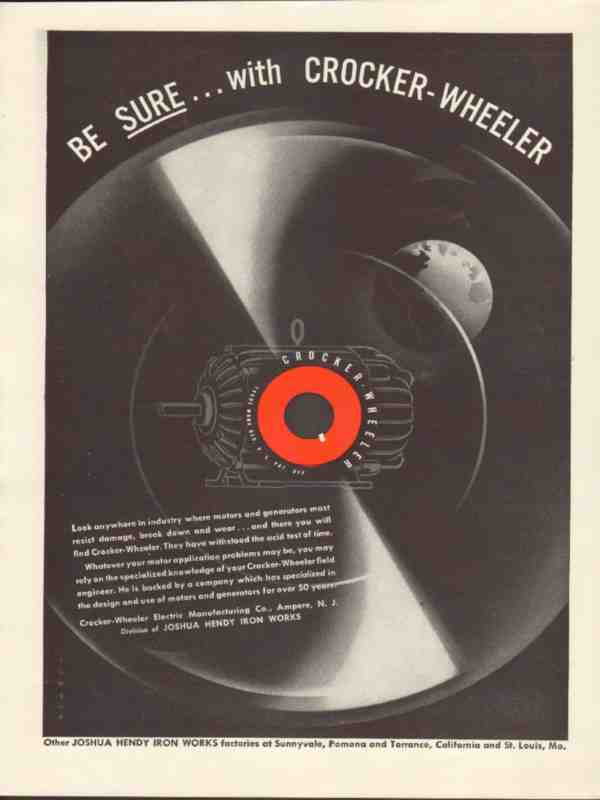 crocker-wheeler electric mfg 1943 be sure motor generator vintage ad
