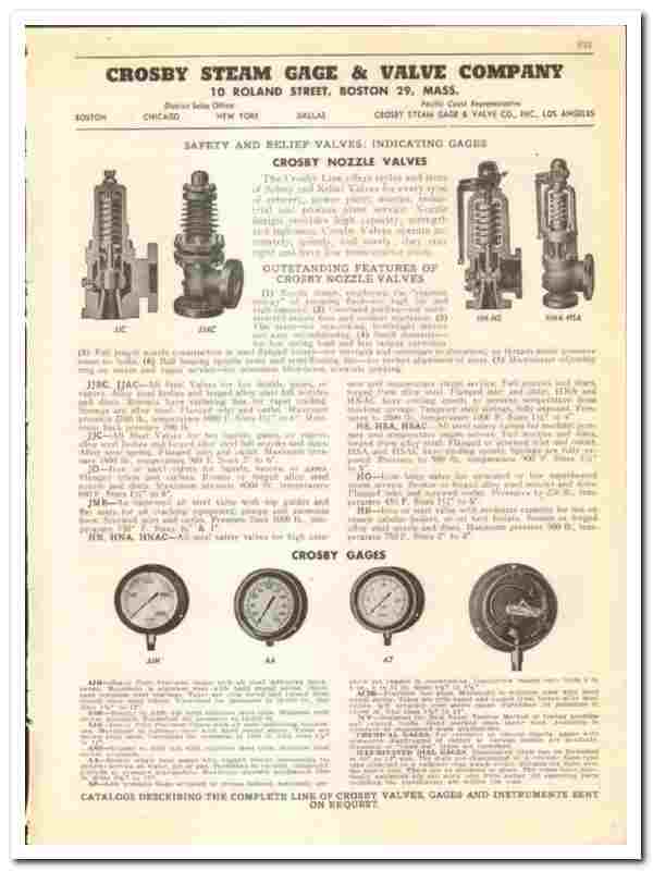 Original 1947 Oil and Gas trade vintage catalog for the CROSBY STEAM GAGE & VALVE COMPANY. Main office and plant were located at 10 Roland Street, Boston, MA.