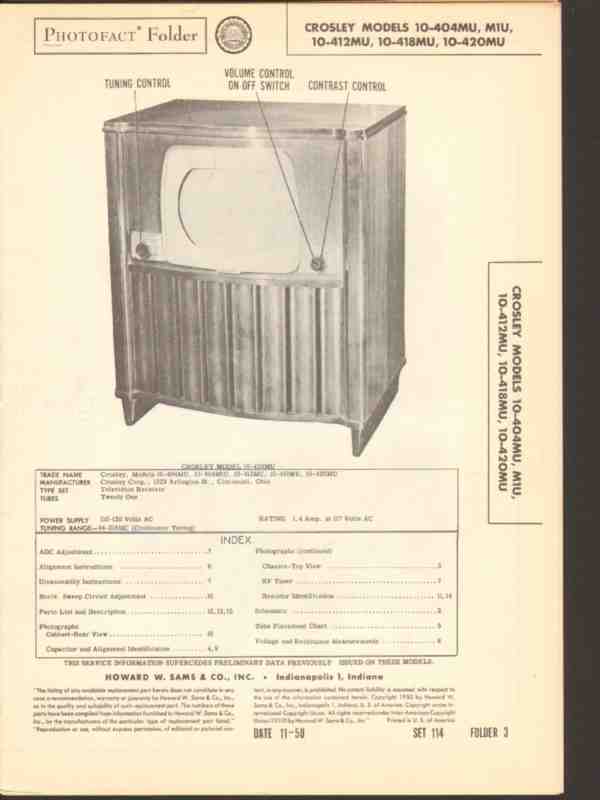 crosley model 10-404mu -412mu -418mu -420mu tv sams photofact manual