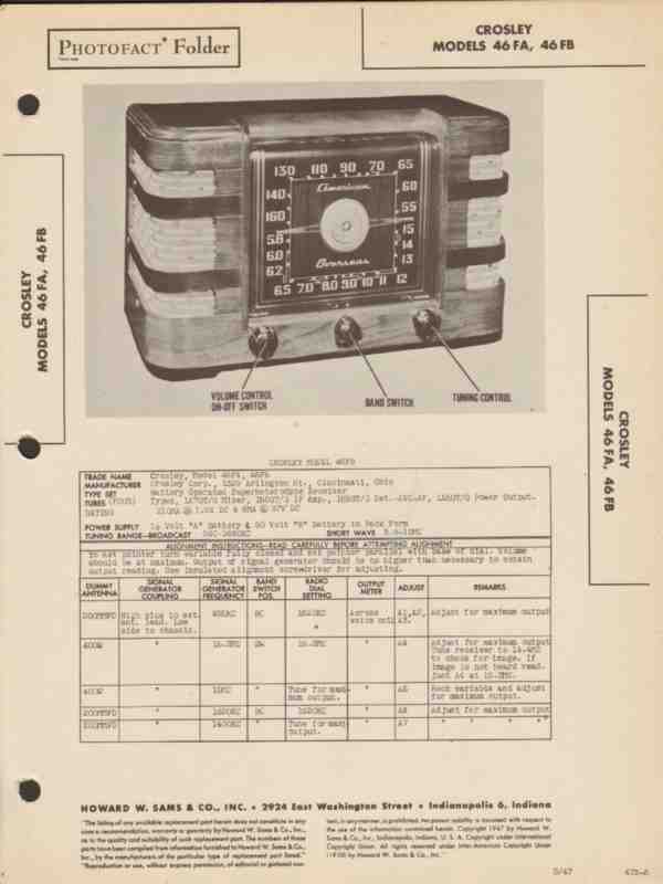crosley model 46fa 46fb am sw radio receiver sams photofact manual