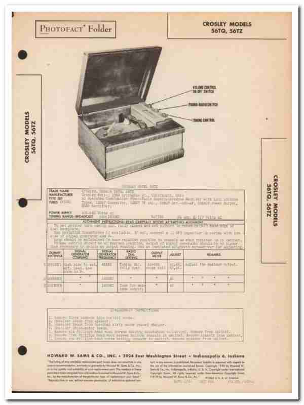 crosley model 56tq 56tz 5-tube am radio phono sams photofact manual