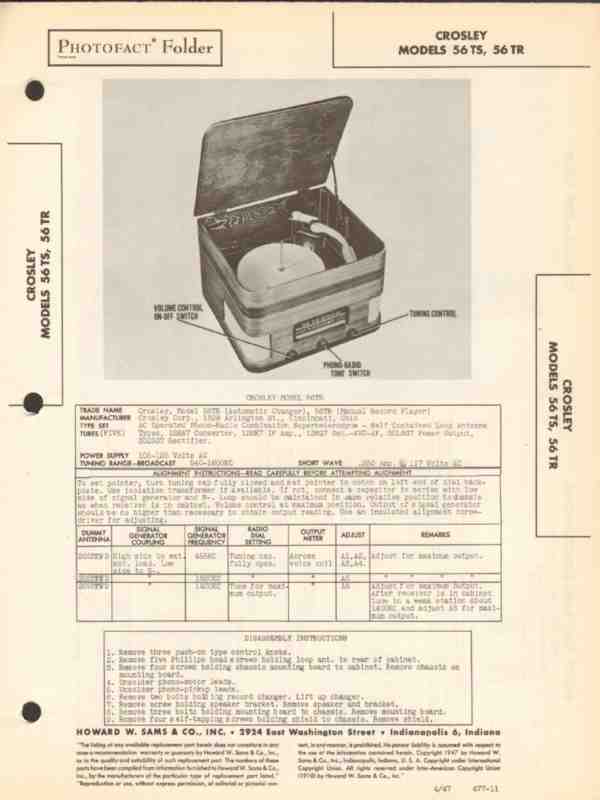 crosley model 56ts 56tr am radio phonograph sams photofact manual