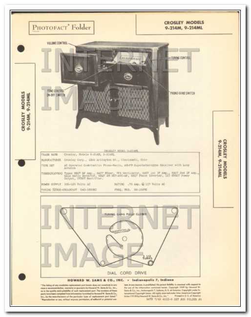 crosley models 9-214m 9-214ml am fm radio phono sams photofact manual