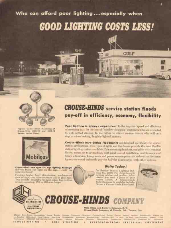 crouse-hinds company 1957 lighting service station floods vintage ad