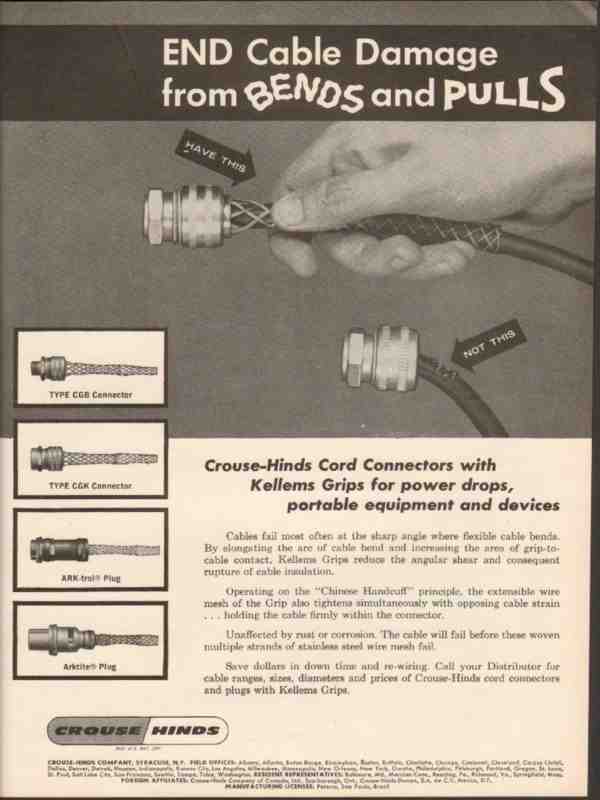 crouse-hinds company 1962 cable damage bends pulls grips vintage ad