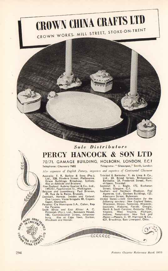 crown china crafts ltd 1953 percy hancock flowers pottery vintage ad