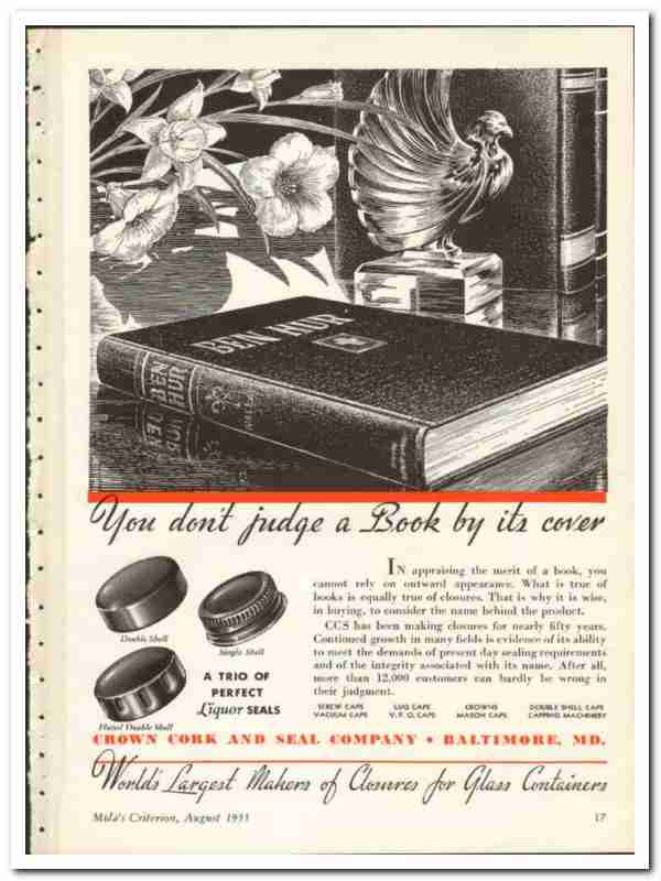 Crown Cork Seal Company 1935 vintage glass ad closures book judge