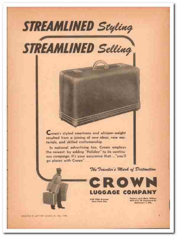 Crown Luggage Company 1946 Vintage Ad Post-War Streamlined Styling