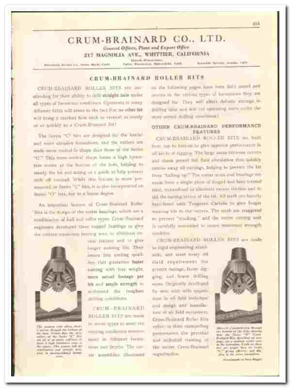 Original 1942 Oil and Gas trade vintage catalog for the CRUM-BRAINARD COMPANY, LTD. Main office and plant were located at 217 Magnolia Avenue, Whittier, CA.