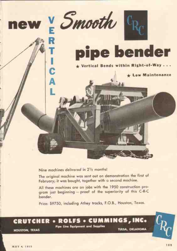 Crutcher Rolfs Cummings Inc 1950 Vintage Ad Oil Vertical Pipe Bender