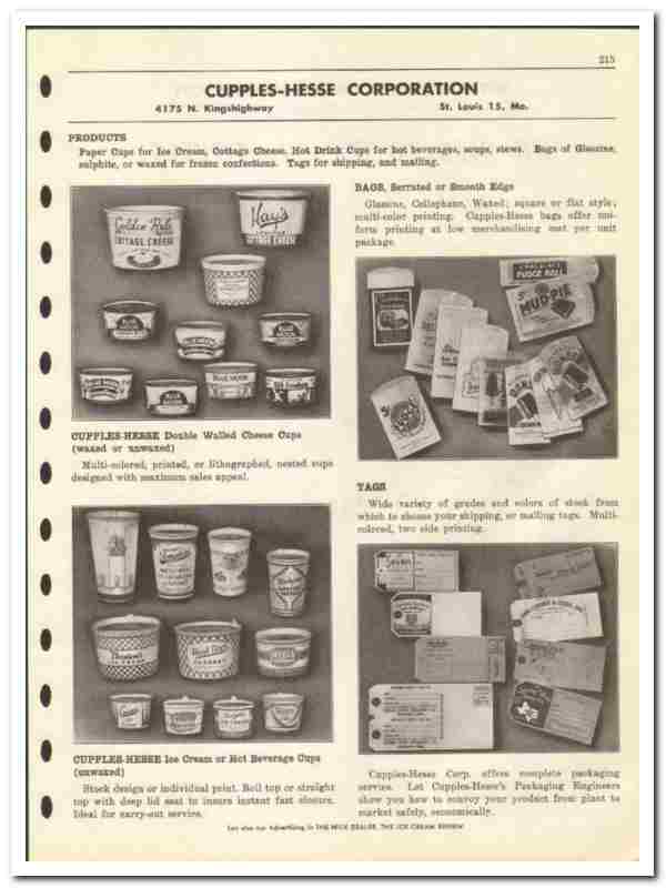Cupples-Hesse Corp 1946 vintage dairy catalog containers cups bags
