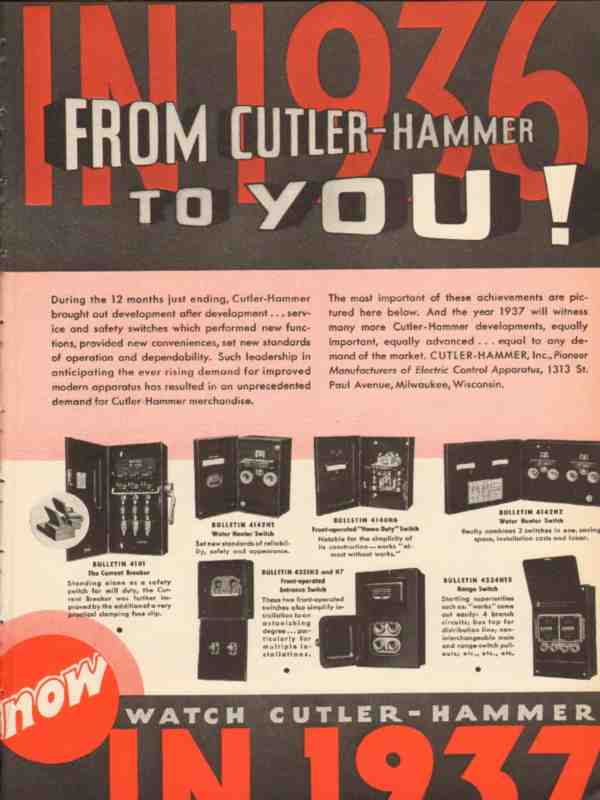 cutler-hammer inc 1936 development electrical safe switches vintage ad