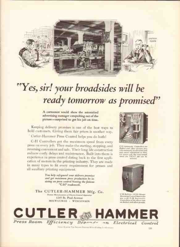 cutler-hammer mfg company 1926 promised print press control vintage ad