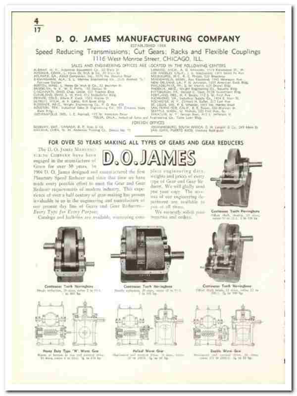 D O James Mfg Company 1945 vintage industrial catalog gear reducers