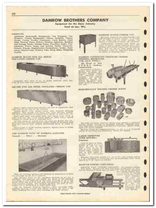 Damrow Brothers Company 1936 vintage dairy catalog cheese vat press