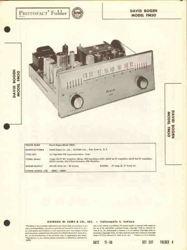 david bogen model fm50 7-tube fm radio tuner sams photofact manual