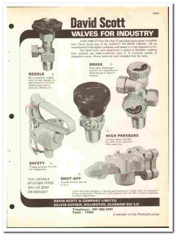 Original 1974 Oil and Gas trade vintage catalog for DAVID SCOTT & COMPANY LTD. (A Member of the Prestcold Group). Main office and plant were located at Kelvin Avenue, Hillington, Glasgow, UK.