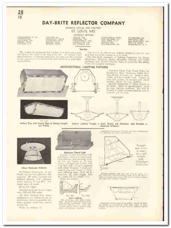 Original electrical trade vintage catalog for DAY-BRITE REFLECTOR COMPANY. Main office and plant was located in St Louis, MO.