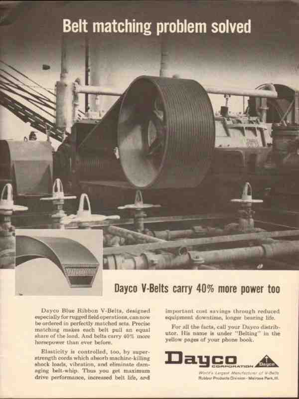 Dayco Corp 1962 Vintage Ad Oil Field V-Belt Matching Problem Solved