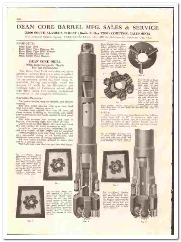 Original 1936 Oil and Gas trade vintage catalog for DEAN CORE BARREL MANUFACTURING, SALES & SERVICE, INC. Main office and plant were located at 3200 South Alameda Street, Compton, CA.