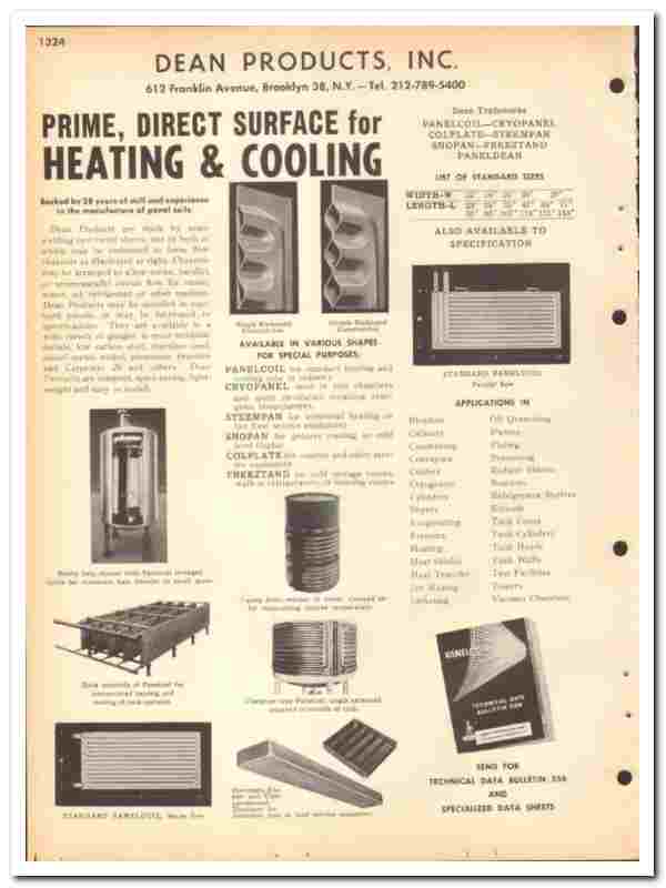 Dean Products Inc 1964 vintage heating catalog panel coils process