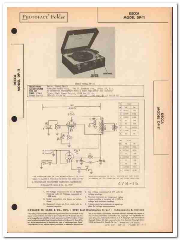 decca model dp-11 2-tube amplifier phonograph sams photofact manual