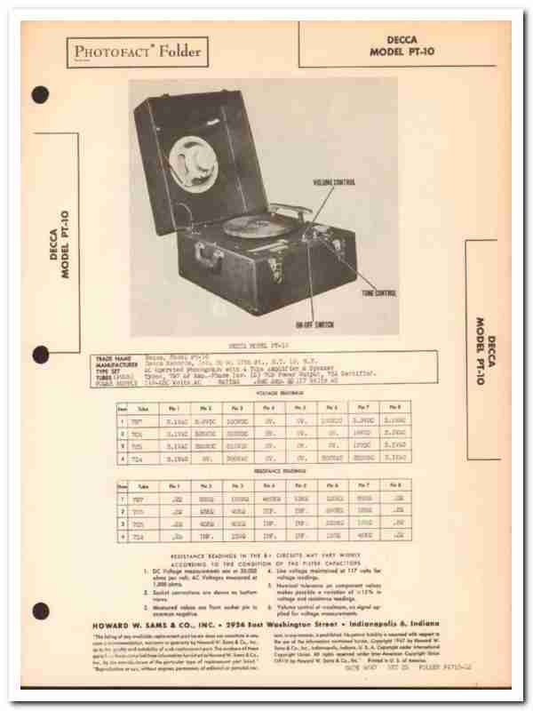 decca model pt-10 4-tube amplifier phonograph sams photofact manual