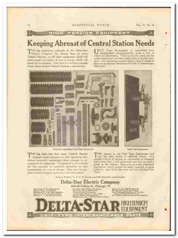Delta-Star Electric Company 1921 vintage ad Central Station Unit Type