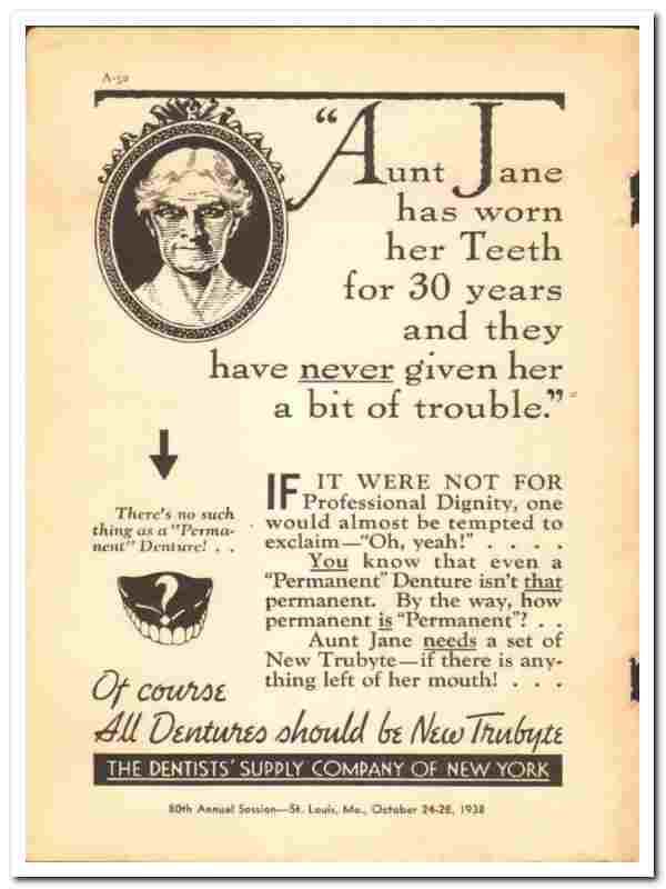 Dentists Supply Company NY 1938 vintage dental ad dentures Aunt Jane
