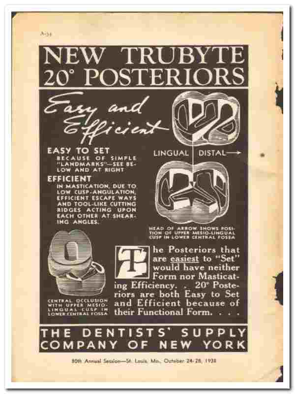 Dentists Supply Company NY 1938 vintage dental ad Trubyte posteriors