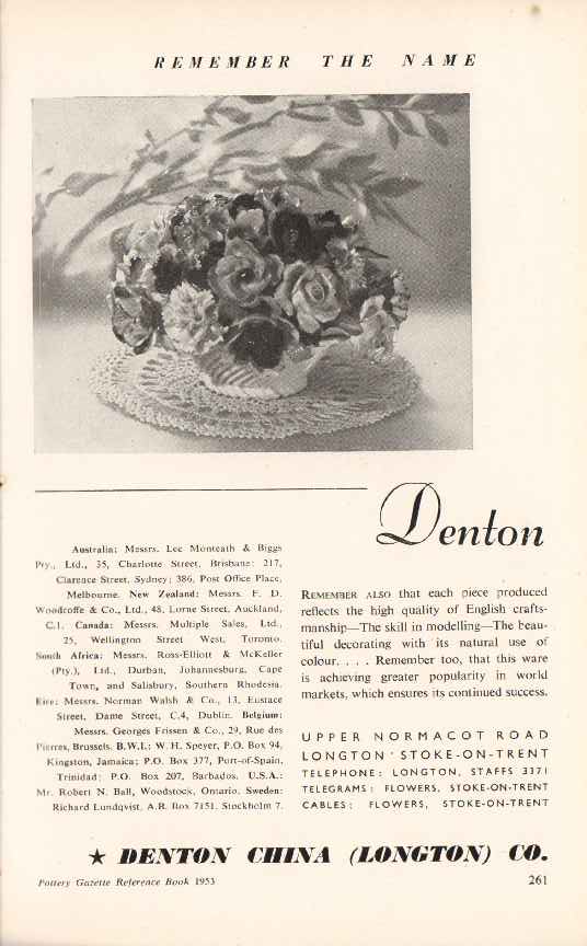 Original pottery vintage ad for DENTON CHINA COMPANY. Remember English Craftsmanship, skill in modeling, beautiful decorating with its natural u se of color. This ware is achieving greater popularity in world markets, which ensures its continued success.