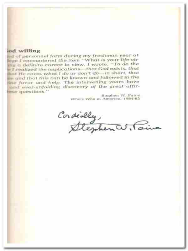 Soft covered book titled DEO VOLENTE, A BIOGRAPHY OF STEPHEN W. PAINE by Miriam Paine Lemcio, 1987, 240 pages. Autographed by Stephen Paine. See Additional Images for signature.