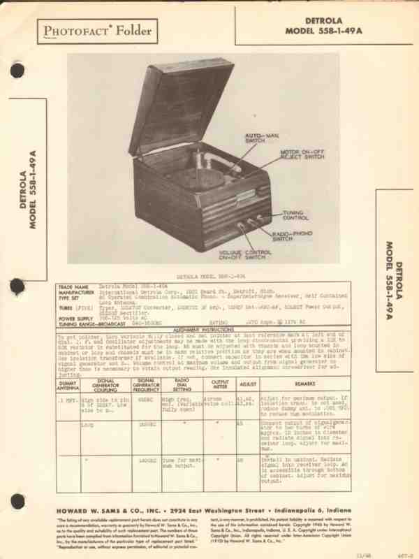 detrola model 558-1-49a am radio phonograph sams photofact manual