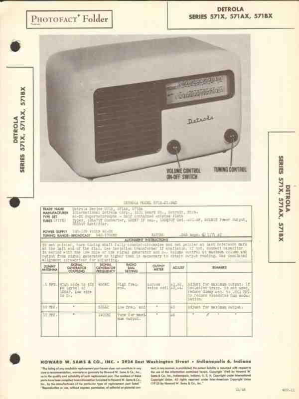 detrola model 571x 571ax 571bx am radio receiver sams photofact manual