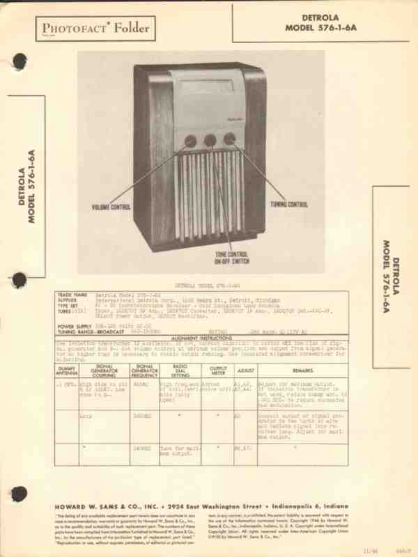 detrola model 576-1-6a 6 tube am radio receiver sams photofact manual