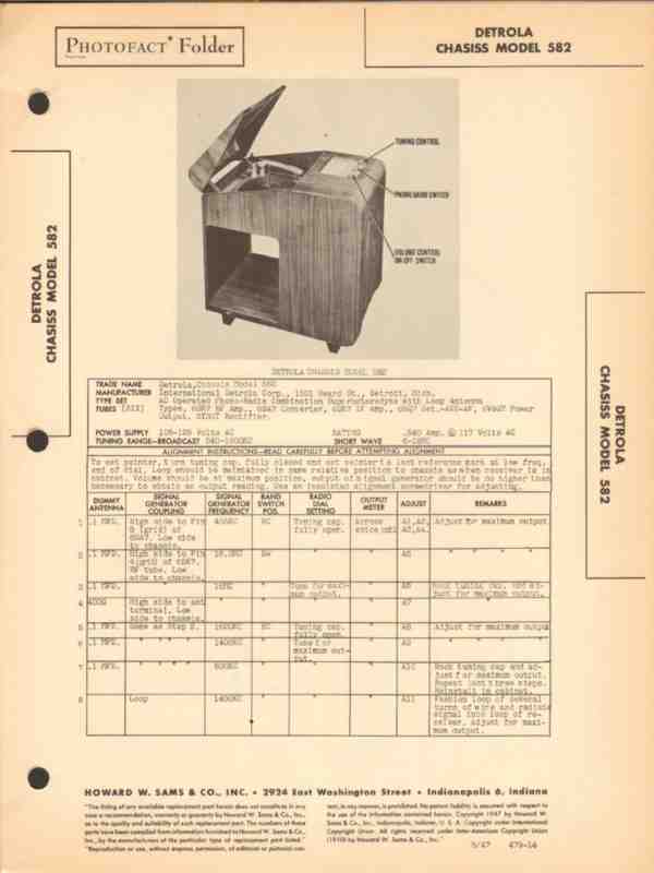 detrola model 582 6 tubes am sw radio phonograph sams photofact manual