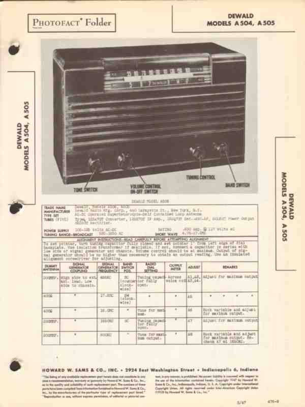 dewald model a504 a505 am sw radio receiver sams photofact manual