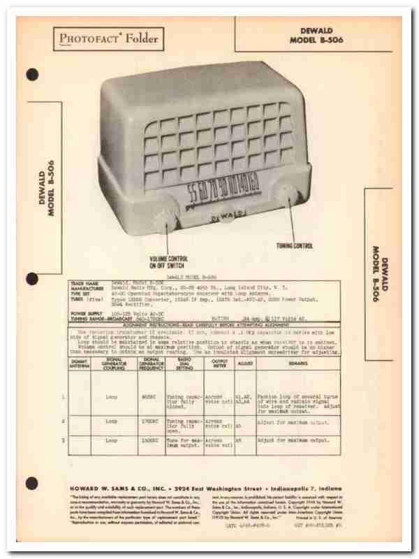 dewald model b-506 5-tube am radio receiver sams photofact manual