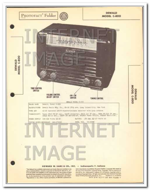 dewald model c-800 8 tube am fm radio receiver sams photofact manual