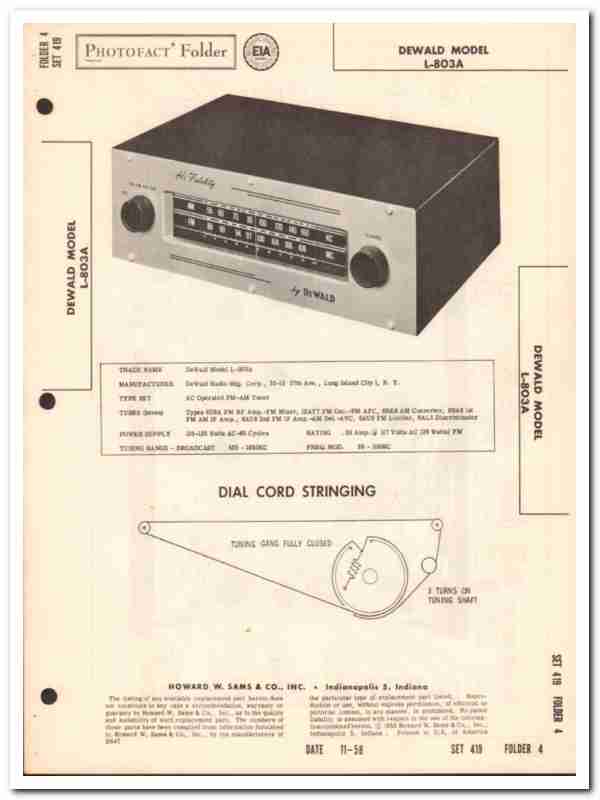 dewald model l-803a 7-tube am-fm radio tuner sams photofact manual
