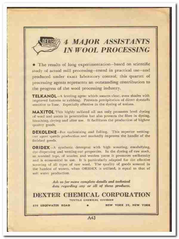 Dexter Chemical Corp 1948 vintage ad textile wool processing Oridex