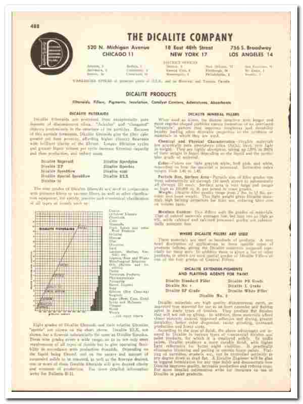 Dicalite Company 1947 vintage industrial catalog Filteraids Fillers